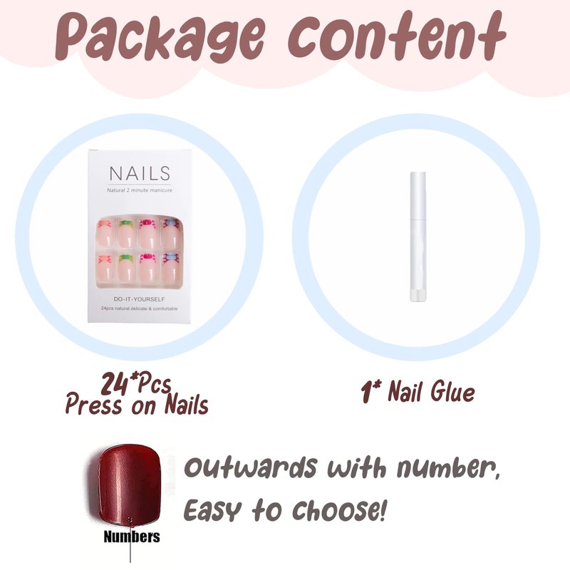 - 【Health and Durable】Our rainbow press on nails are made of healthy ABS material, no irritating smell, higher gloss, not easy to break, and will not harm the human body or nails, and can be used with confidence