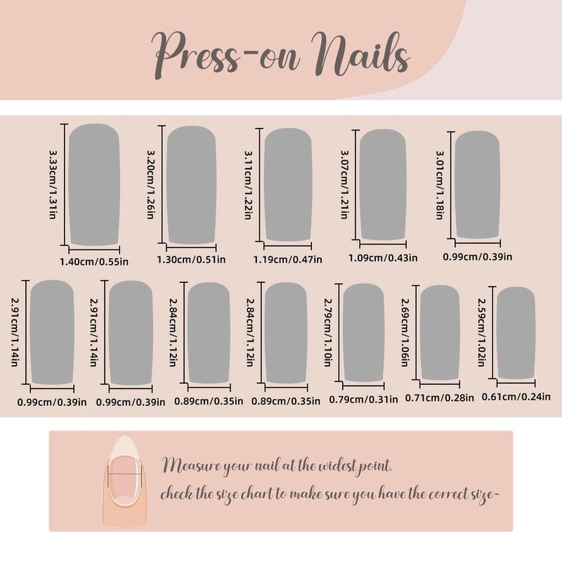 - 【Package Contains】You will get 24 pieces of long square press on nails with 12 different sizes, 1 nail glue for DIY your own nails. you can choose the most suitable false nail for yourself, it is easy to trim and file them to in any length and shape you like