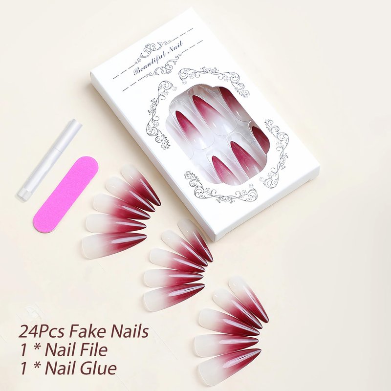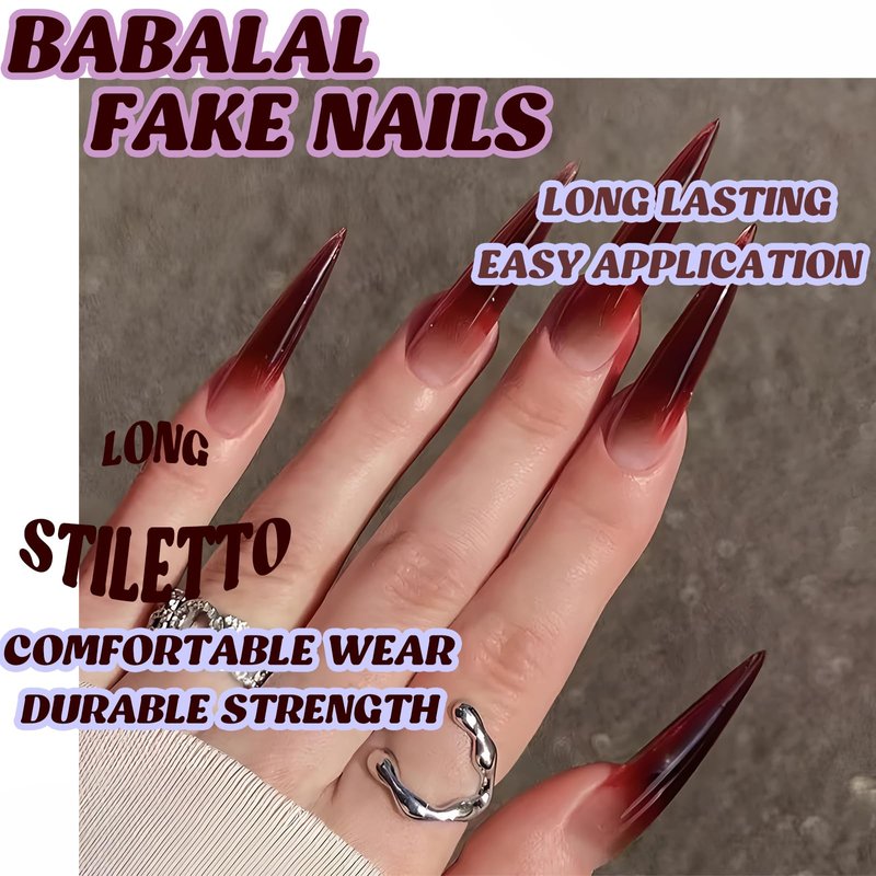 BABALAL Press on Nails Long Stiletto Fake Nails Red Gradient Glue on Nails Goth Acrylic Nails 24Pcs Y2k Almond Manicure Artificial False Nails for Women and Girls