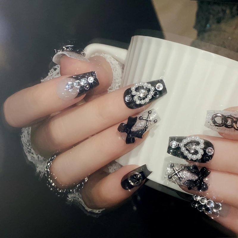 - 【Health and Durable】Our black press on nails are made of healthy ABS material, no irritating smell, higher gloss, not easy to break, and will not harm the human body or nails, and can be used with confidence