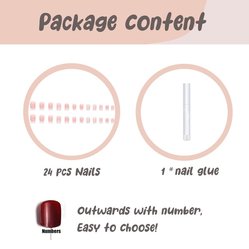 - 【Package Includes】One boxes of square press on nails medium(24 pcs) in one pack, divided into different sizes, you will definitely find a fake nail that fits your nail size. 1 nail glue included with the package. No need to buy other things, you can get the nail salon-like effect