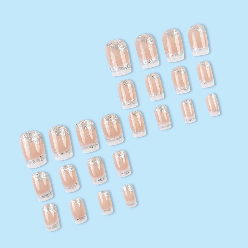 4. Select a right size of the fake nail, apply the glue to the back of the nail or use the adhesive tabs to attach the back of the nail and put it on your fingernails.