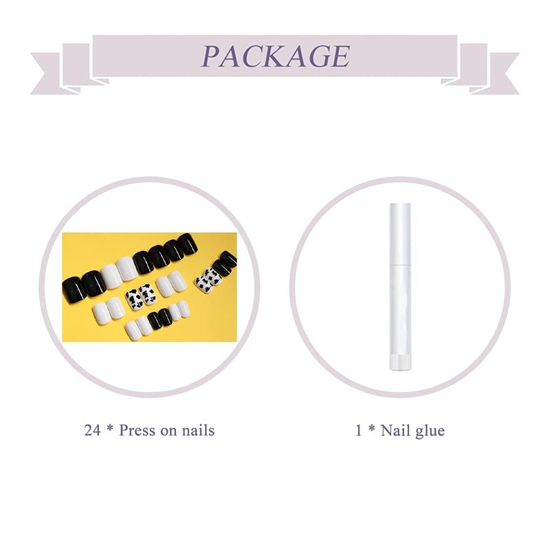 Package Content: 24pcs glue on nails, 1 nail glue