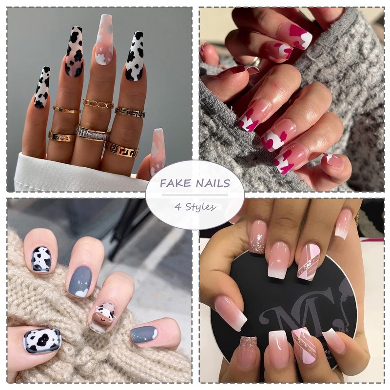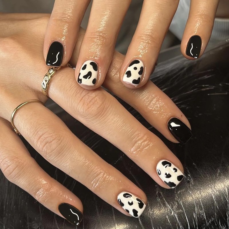 - UNIQUE DESIGN - Cow print design cute press on nails, short square shape, combine trendy elements with classic color and shape, looks attractive and cute
