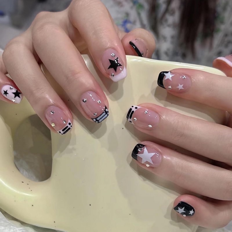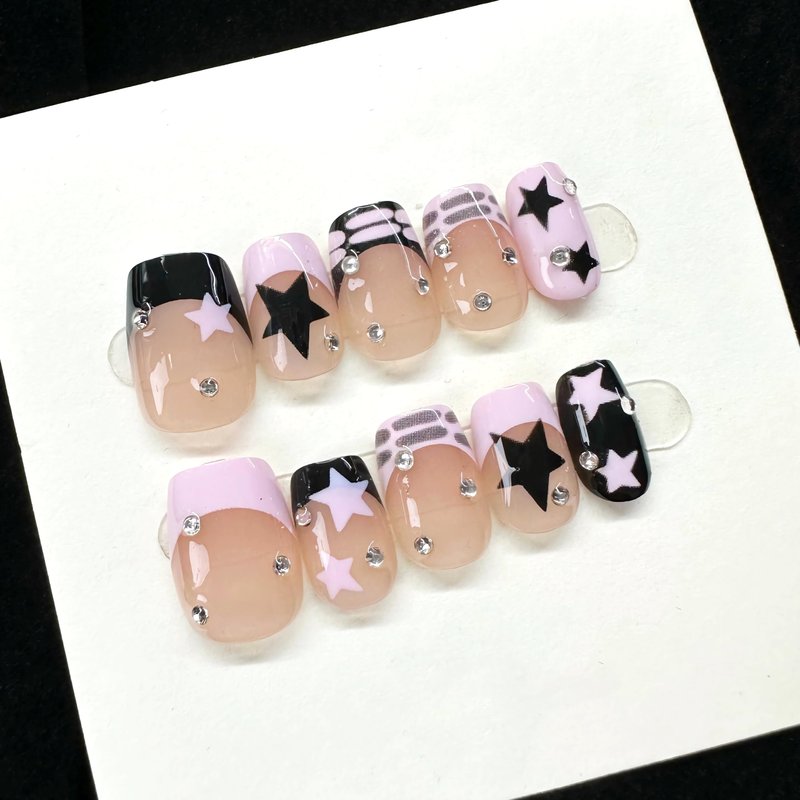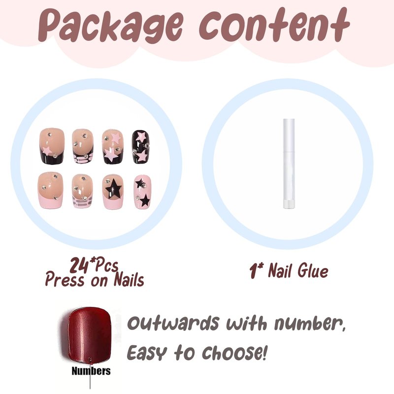 - 【Unique Design】 Pink black star nails design, square press on nails short, different colors are matched together to make your fingernails nicer