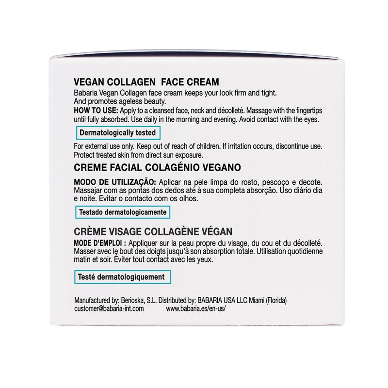 - Plant-Based Vegan Collagen: Derived from wild plants like other Babaria facial skin care products, our Babaria Vegan Collagen Face Cream delivers the benefits of collagen without any animal-derived ingredients.