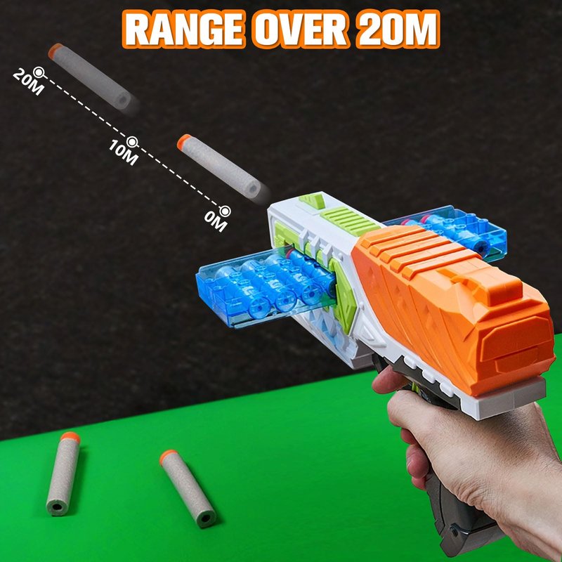 - SAFE AND HARMLESS: Comes with two different EVA soft dart bullets, which are soft and safe and won't cause any damage to household items, screens, light bulbs, and walls, and won't leave any marks.