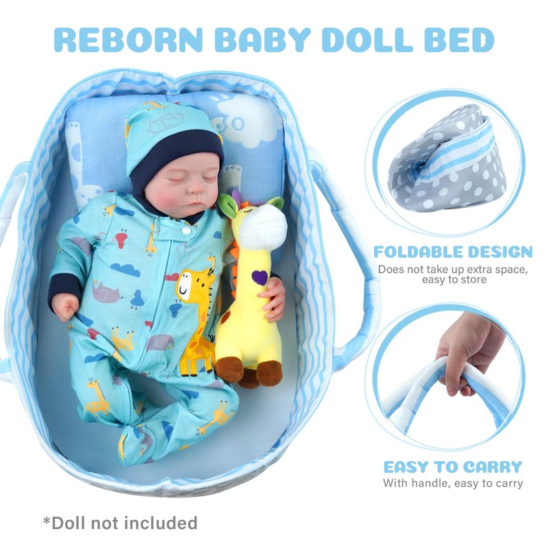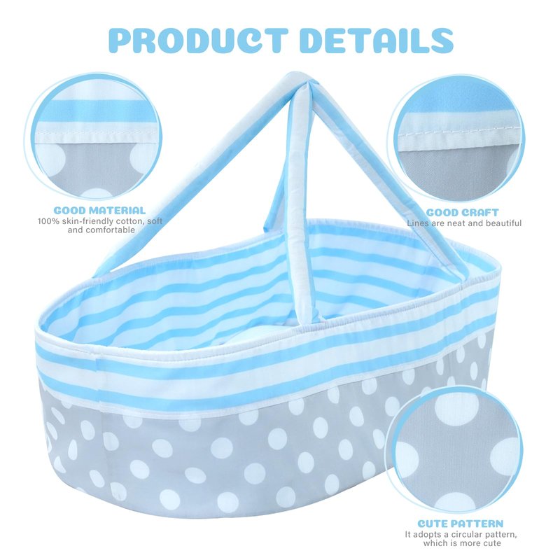 BABESIDE Reborn Baby Dolls Bassinet Foldable Baby Doll Crib Bed Soft Doll Carrier Doll Accessories with Handle for 17-22 inch Baby Dolls Girls Boys (Blue)