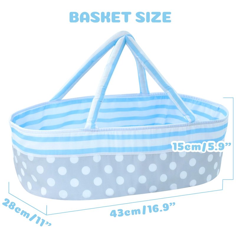 - BASKET SIZE - L*W*H=16.9*11*5.9" (43*28*15cm). Perfect for 17-22 inch reborn dolls. NOTE: Doll is NOT included.