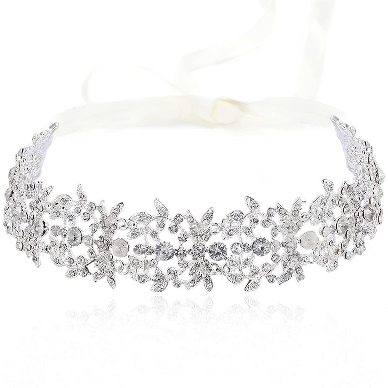 - Feature: Dazzling Austrian rhinestones are set on the delicate vine base, like bright starlight shining on the elegant romantic hairstyle. With detachable soft ribbons, it is easy to tie on and take off, regardless of hair length and style.