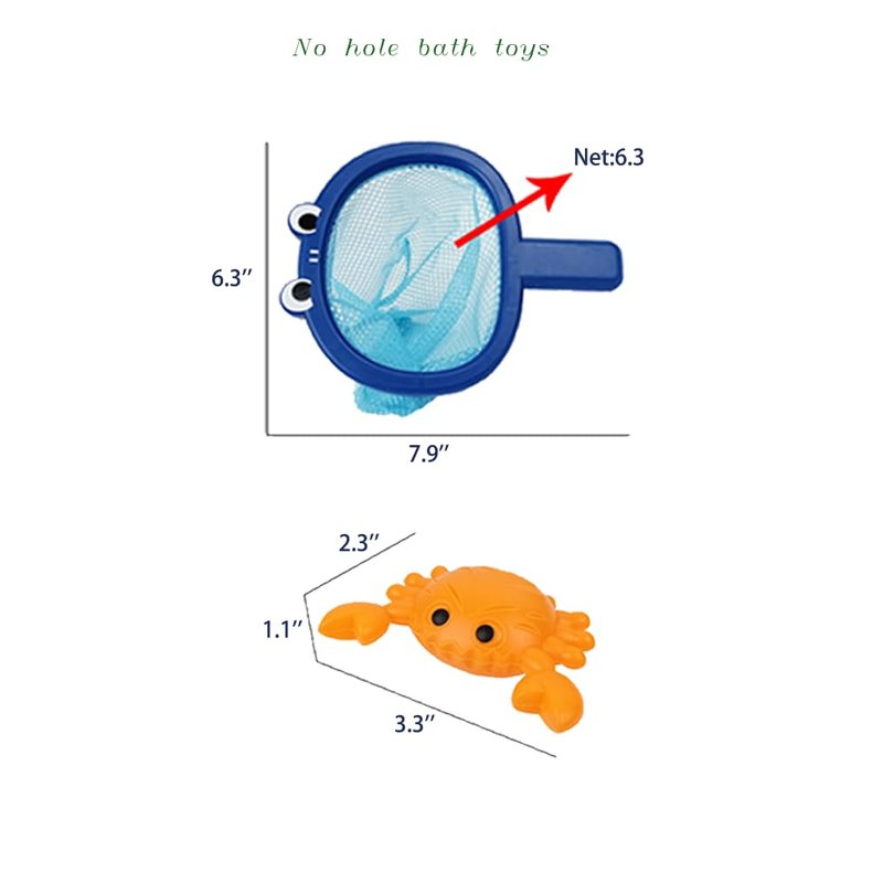 - 【Crab Fishing Play Set】:You will get 1 Pcs green crab Fishing Net and 2 Pcs Water Floating Sea Animals crab Toys.Interesting fishing toys and vivid frog toys will catch the attention of children, making bathing a highly anticipated and enjoyable game. Your kids will love them very much.