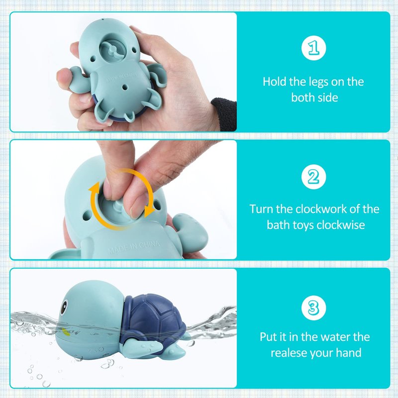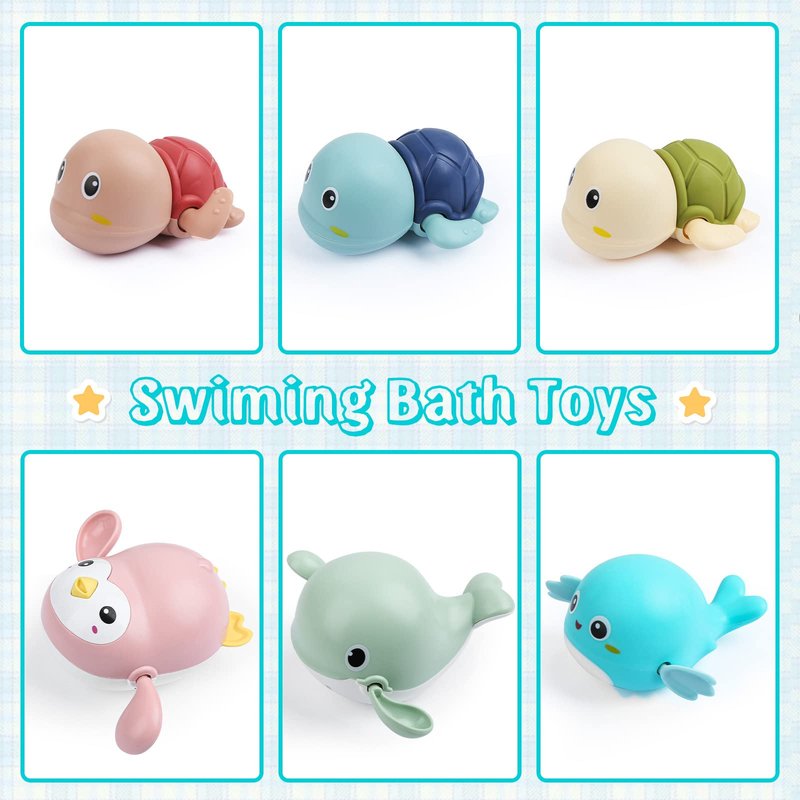 - 🐳Easy to Use: Turn the bath toy clockwise and drop it into the water, and they swim quickly. The baby's face will light up with joy when he sees six colorful bath toys swimming in the tub