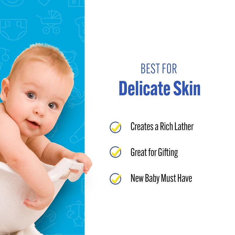 - HOW TO – Fully wet the sponge and let it soften before applying your preferred baby wash or soap to create a luxurious lather, gently wash your baby’s skin