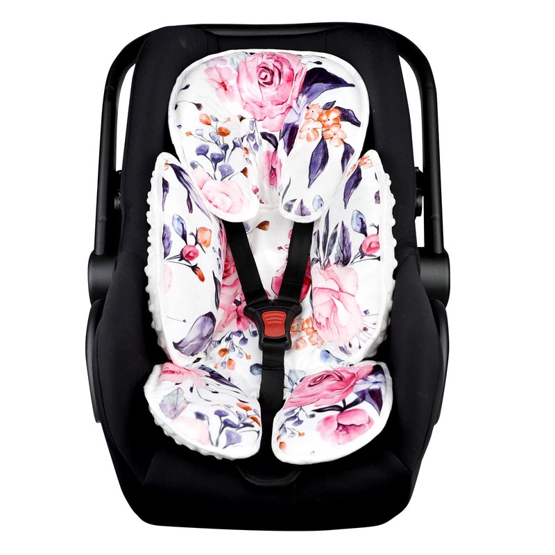 - ✅[HIGH-QUALITY MATERIALS]: Our 2 in 1 Infant car seat head & body support is made from super soft flannel, breathable Minky dot fabric, and premium cotton, double side can be used. Printed with fashion colors and beautiful flowers, perfect for busy modern parents.