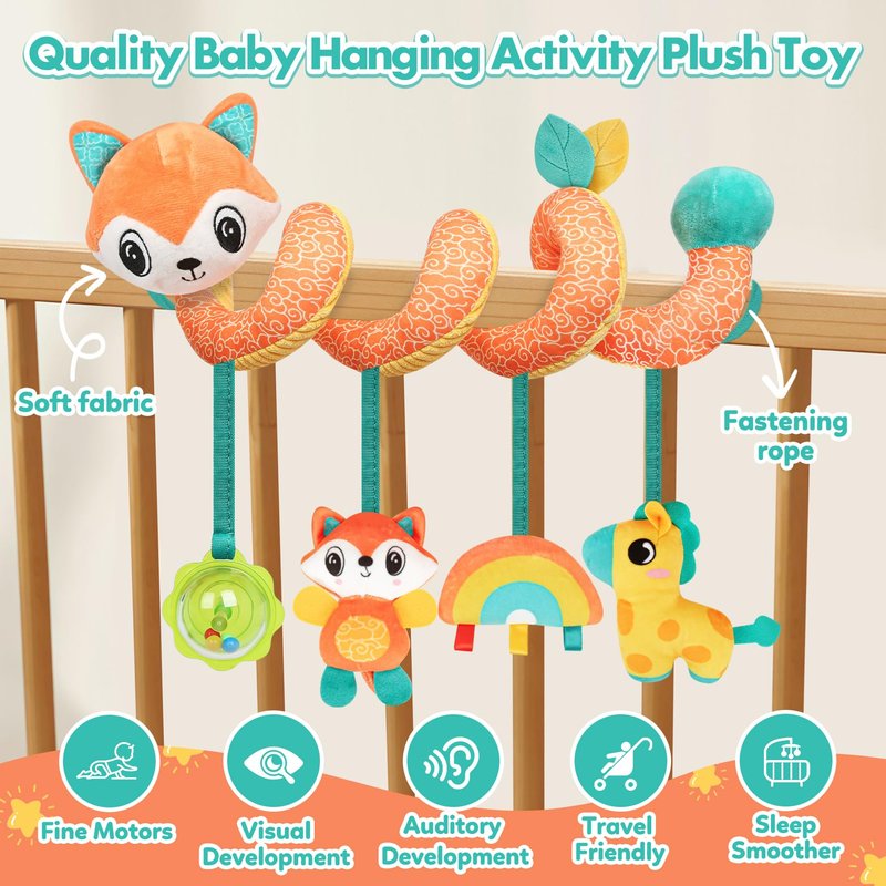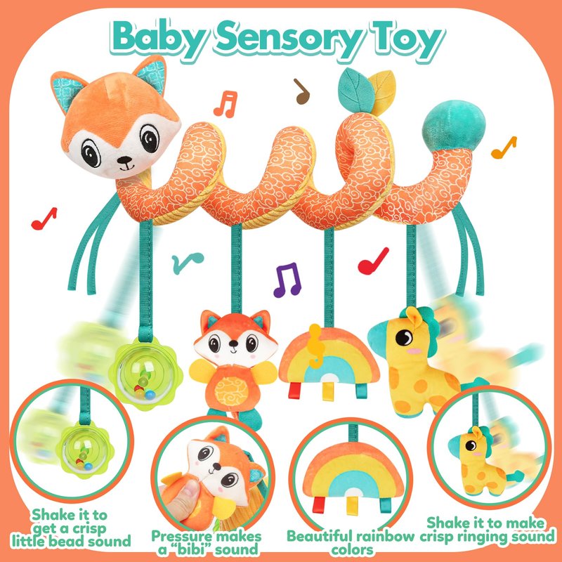 - 【Cute FOX Baby Car Seat Toy】Bright colors, mixed textures, and shapes and adorable orange fox design, the spiral toy can easily catch baby's eyes and attract baby's attention. Inspire baby's visual development and cultivating baby's color perception, encourage baby to touch and explore.