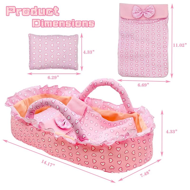 - Includes 1 cradle bag, fabric blanket, stuffed pillow for 9-10-11-12 inches baby doll.