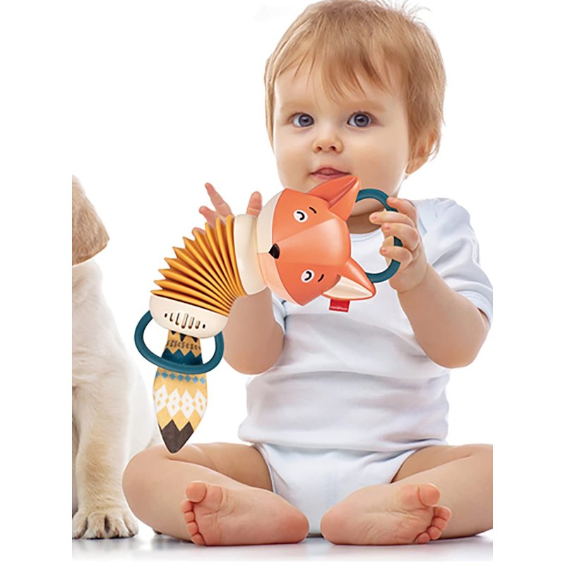 Explore and Play Anywhere Unleash your baby’s adventurous spirit with our versatile baby fox toy, designed to keep them engaged and entertained wherever life takes you. Whether at home, in the stroller, or during car rides, this charming fox promises hours of fun and discovery. Musical Fun at Your Fingertips Watch your baby’s face light up with joy as they press the fox’s mouth button to hear delightful classical melodies. This engaging feature not only entertains but also helps foster a love for music from an early age. On-the-Go Entertainment Perfect for parents on the move, our baby fox toy comes with a convenient lanyard for easy attachment to strollers, car seats, and cribs. Keep your little one entertained and content during every outing, knowing they have their favorite toy within reach. Develop Motor Skills This toy is more than just cute—it's educational! The accordion stretch feature is designed to develop essential motor skills like grasping and teething. As your baby stretches and squeezes, they’ll be learning important skills while having a blast. Squeaky Fun The fox’s squeaky tail adds an extra layer of excitement to playtime. This sensory feature delights your baby’s senses, keeping them engaged and entertained during every play session. Bring home this playful companion and watch as your baby explores, learns, and grows with every interaction!