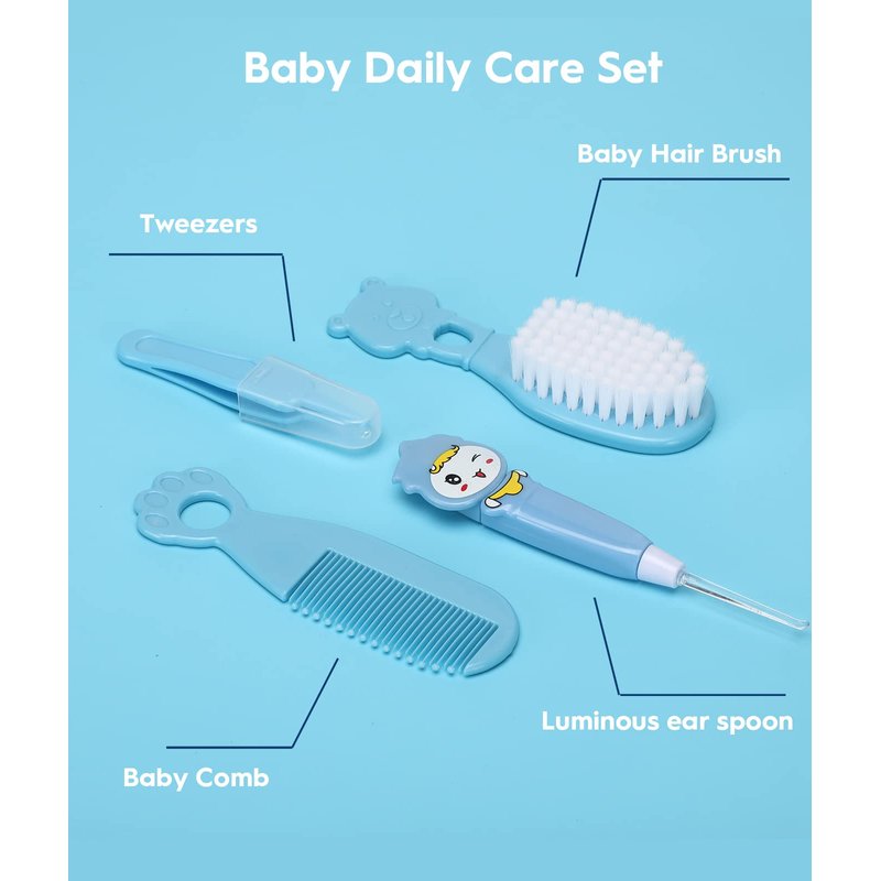 Baby Healthcare and Grooming Kit, Safety Newborn Nursery Care Set, with Hair Brush Comb, Nail Clipper, Thermometer, Pacifier Clip, Nasal Aspirator for Newborn Infant Baby Girls Boys (Blue)