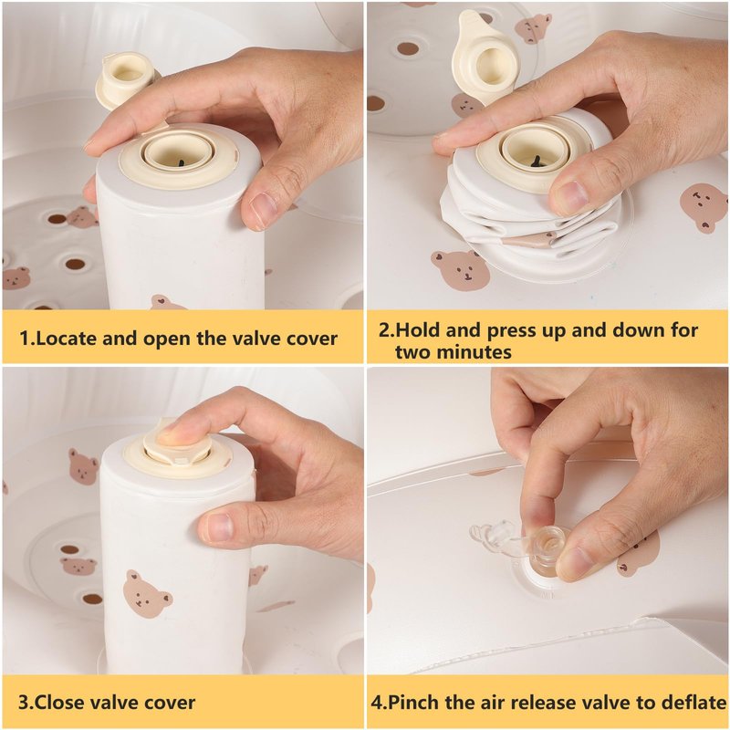 - 【Safe with Build-in Pump】Just press up and down the built-in air pump to inflate the chair easily without other tools. Easy to inflate or deflate, with storage case, can be a temporary place for babies anytime, anywhere. Baby floor seat is suitable for infants of different ages and sizes