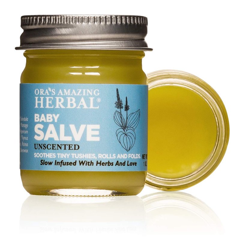 - Tushies aren't the only areas on a baby that need care. Avoid overbathing by using a small amount of salve to wipe down areas that tend to collect debris and get irritated. Fat little necks, behind ears and knees, and in various rolls and folds can be kept healthy with an occational application of a thin layer of Ora's Amazing Herbal Baby Salve.