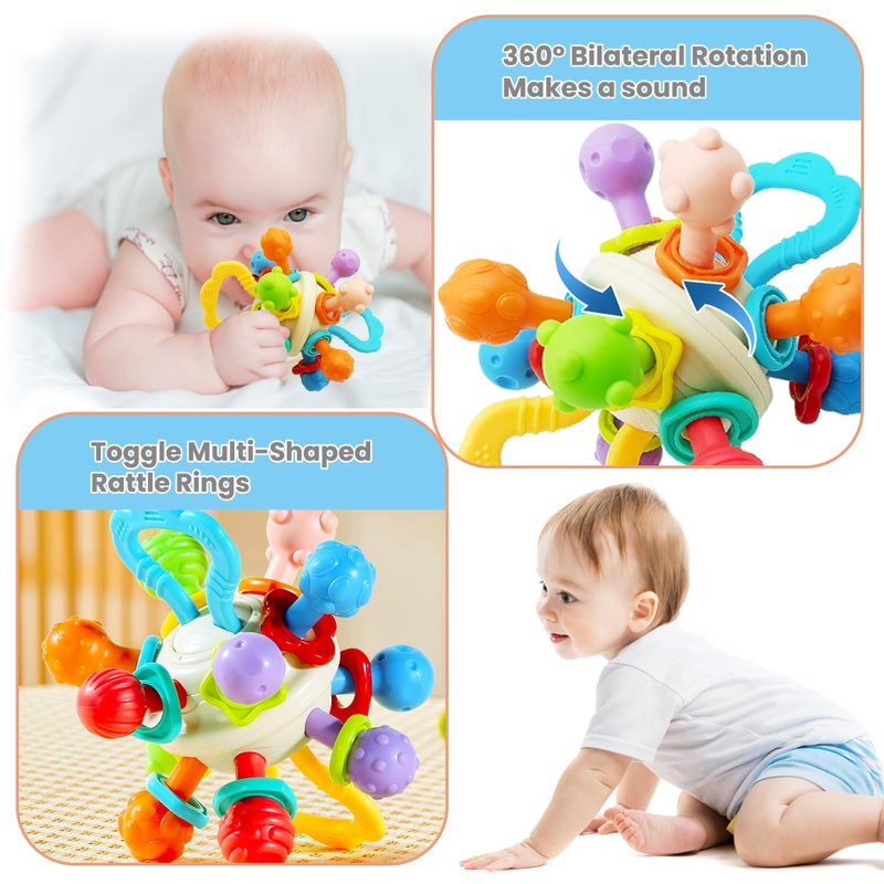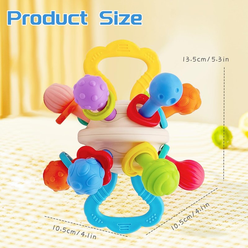 - [MULTI-TEXTURED SENSORY TEETHER] 12 textured teething balls, with holding handles both sides. A baby uses mouth and hands all the time!