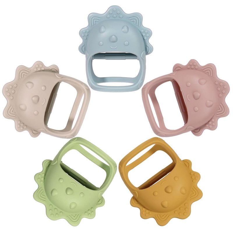 - Never Drop: Soft silicone baby teether is easy for baby to hold. Baby grabs the lever and bites or sucks on the textured part. The surrounding design makes baby teething toys not fall off easily. This teether will help parents solve their baby's problem of biting their little hands.