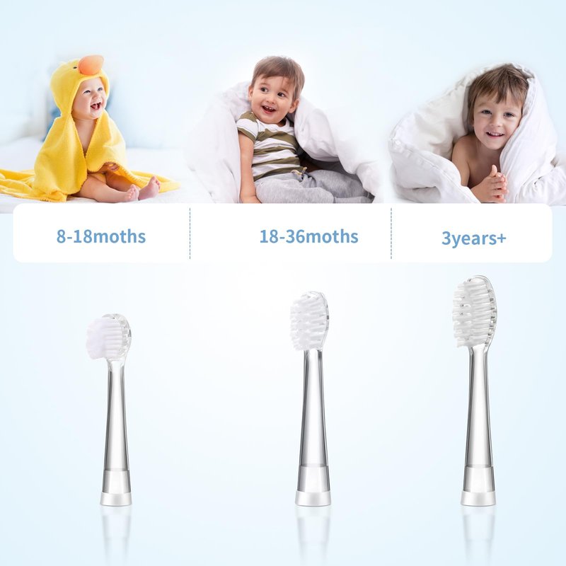 - 【3 Types of Children/Baby Toothbrush Replacement Heads】8-18 months. 18-36 months. 3 years old and above, please choose a suitable toothbrush replacement head.