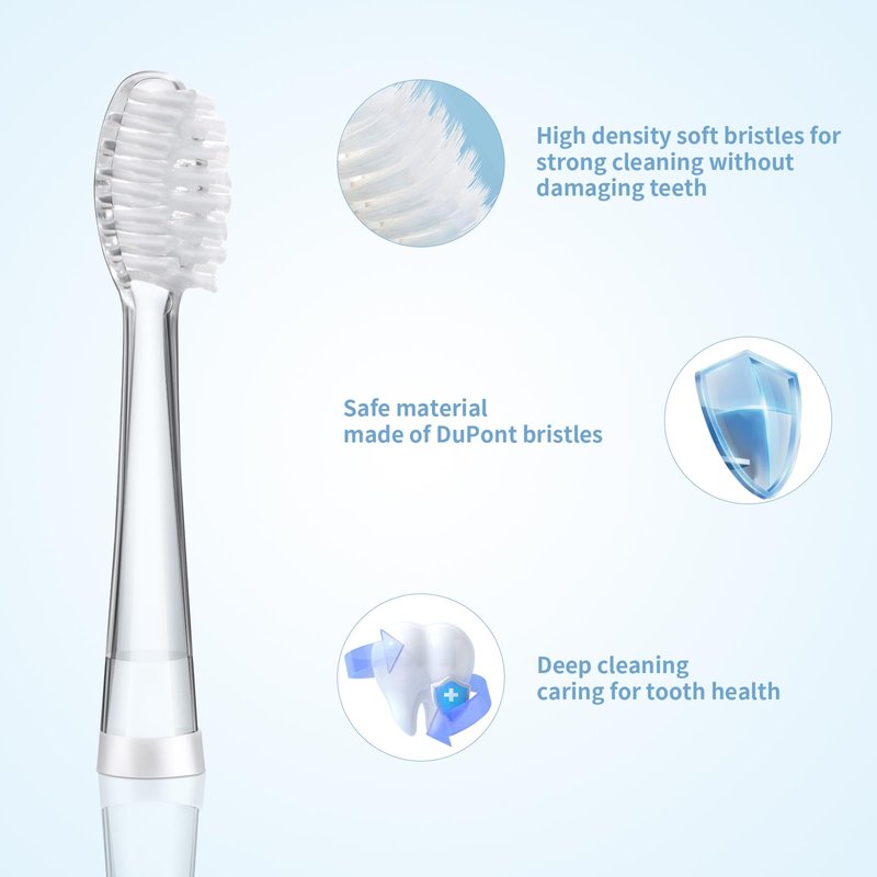 - 【Deep Clean Whitening Action】 Our toothbrush replacement heads for kids feature a contoured design and a curved long-tip bristle design, ensuring that even the hard-to-reach areas in the mouth are thoroughly cleaned. Kids will love the feeling of freshly whitened teeth and fresh breath after brushing with these effective toothbrush heads.The classic 0.152mm soft bristles are designed to fit perfectly onto the brush head for a comfortable and efficient brushing experience.