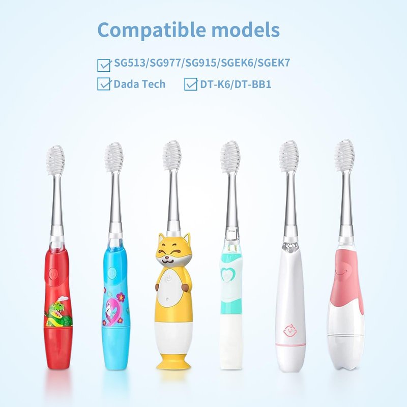- 【Baby Electric Toothbrush Replacement Heads 】: Only for Dada-Tech DT-BB1/DT-K6/DT-977; Only for SEAGO SG-513/SG-977/SG-EK6/EK2/EK7; Only for BRUSH-BABY WildOnes/KIDZSONIC Series. Other models are not compatible, please confirm before purchasing.