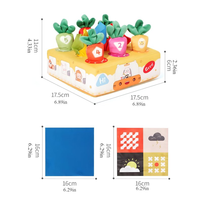 - 2. Multi-functional Design: Our Baby Tissue Box Toy combines the features of a tissue box and a vegetable-pulling game in one. With 6 cute carrots, 4 ultra-soft wipes, and 2 crinkly papers, it offers double the joy for your little one.
