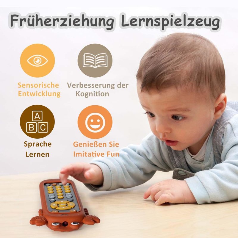 Baby TV Remote Control Toy with Soft Silicone Teether Cute Crab Cover, Musical Realistic Play Remote Toy with Light and Sound, 3 Language Educational Learning Toy for 6M+ Boy and Girls