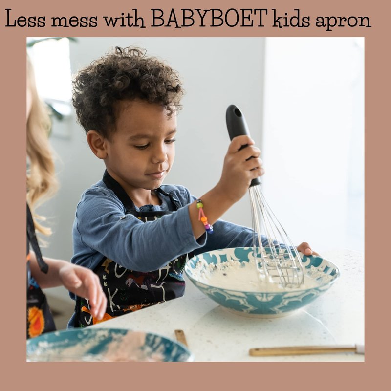 - NATURAL COTTON BABYBOET Kids Aprons are softer and gentler on young skin than synthetic disposable aprons for kids. Our versatile aprons for kids are free of harmful BPA, phthalates and lead.