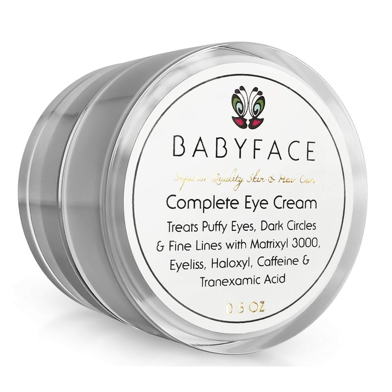 - COMPLETE EYE CREAM: Babyface's Complete Eye Cream is the perfect product for those looking for something specifically formulated for the sensitive eye area. The skin around the eyes is more delicate than the rest of the face, and therefore requires a custom formulation. Whether you’re fighting puffiness in the mornings, dark circles, or fine lines - we’ve got you covered!