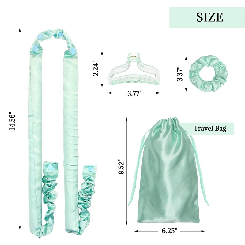 BABYSHEEP Heatless Silk Stain Hair Curler Set, the perfect solution for women who want gorgeous curls without the damage caused by heat styling. This set includes 5 pcs that are designed to be worn while you sleep, giving you effortless curls in the morning.Our curling rod headbands are suitable for both long and short hair, providing a new and innovative way to achieve beautiful curls. Simply wrap your hair around the curling rod headband and secure it in place with the included hair ties. The soft velvet material ensures maximum comfort while you sleep, allowing you to wake up with stunning curls that last all day.Not only do our heatless curlers provide a safe and healthy way to curl your hair, but they also offer versatility and convenience. Whether you're looking to add volume to your hair, create a bouncy blowout look, or enhance your natural curls, our curler set is the perfect choice. Say goodbye to hot rollers and hair twister machines, and embrace the gentle and effective curling power of our heatless curlers.Designed with the needs of women and girls in mind, our heatless curler set is suitable for all hair types and lengths. Whether you have long, short, thick, or thin hair, our curlers will work their magic. The set also makes a great gift for birthdays, holidays, or any special occasion.Join the thousands of satisfied customers who have already discovered the benefits of our heatless curler set.