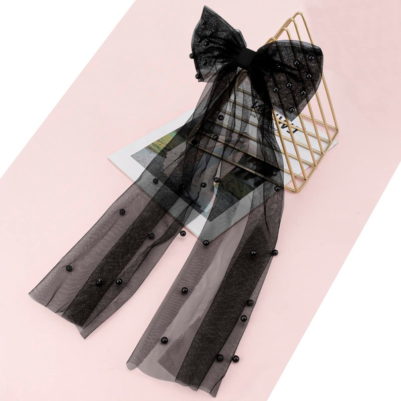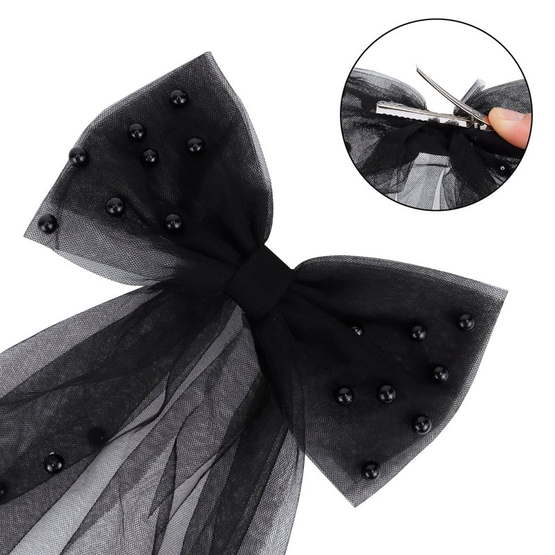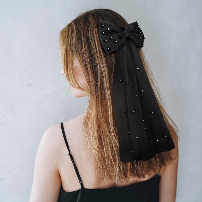 - Pearl Bow Black Veil - Single-layer tulle fabric design, wrinkle-free, 33 high-quality pearls for an alluring luster. With high-quality hair clips, it's easy to wear your hair up or down.