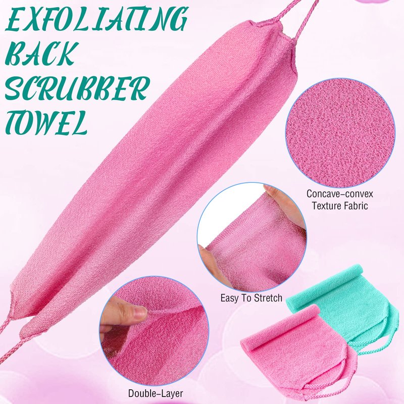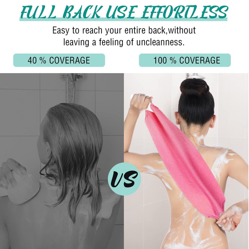 - Versatile Exfoliating Back Scrub: combined with handles at both ends, the exfoliating body scrubber can reach your back with ease, in addition, this wash cloth for back is also suitable for all inaccessible shoulders, back and lower back areas, stimulate circulation of your body and help cellulite rinse easily