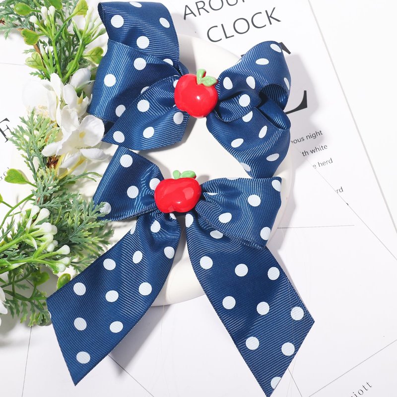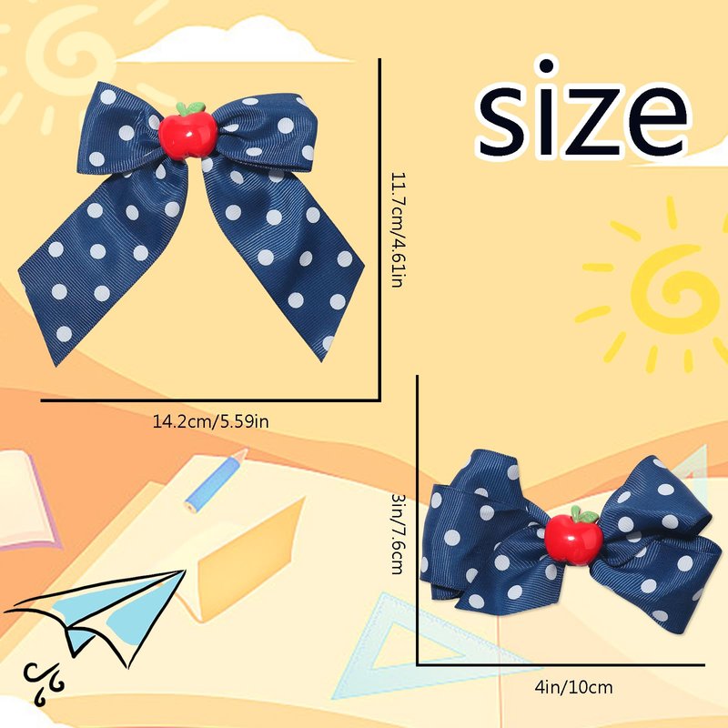 - 【Bow Hair Clips】You'll get 2pcs apple bow hair claws, exclusive to back to school season, with apple pattern as the core element paired with white wave point, cleverly combines the youthful vitality of the campus with the beauty of fashion