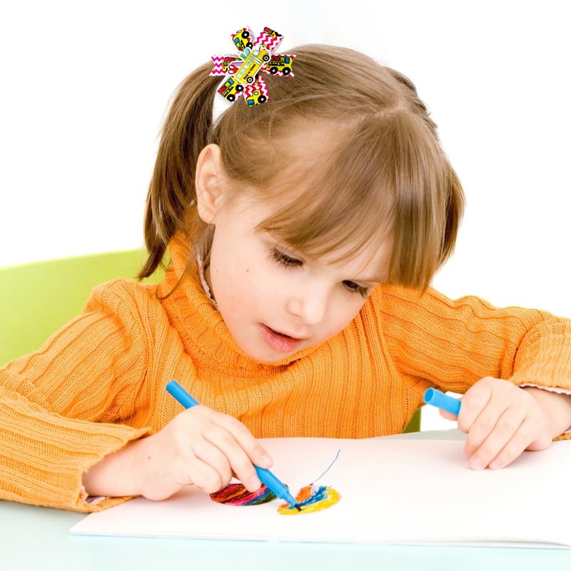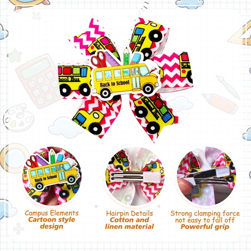 2. Patterns with school themed elements, bus, ruler,pencils, make hair clips look delicate and cute.