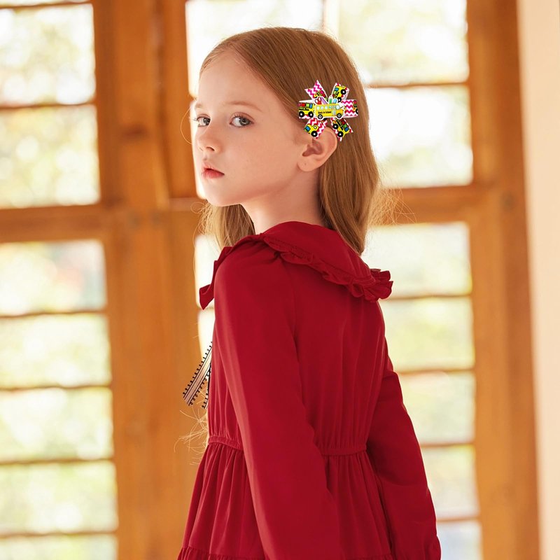 Back to School Hair Clips Yellow Bus Alligator Clips Pink Wave Stripes Hair Clip Design Pencil Ruler Bow Hairgrips First Day Of School Party Hair Accessories for Woman Girl Students 2Pcs (bus)