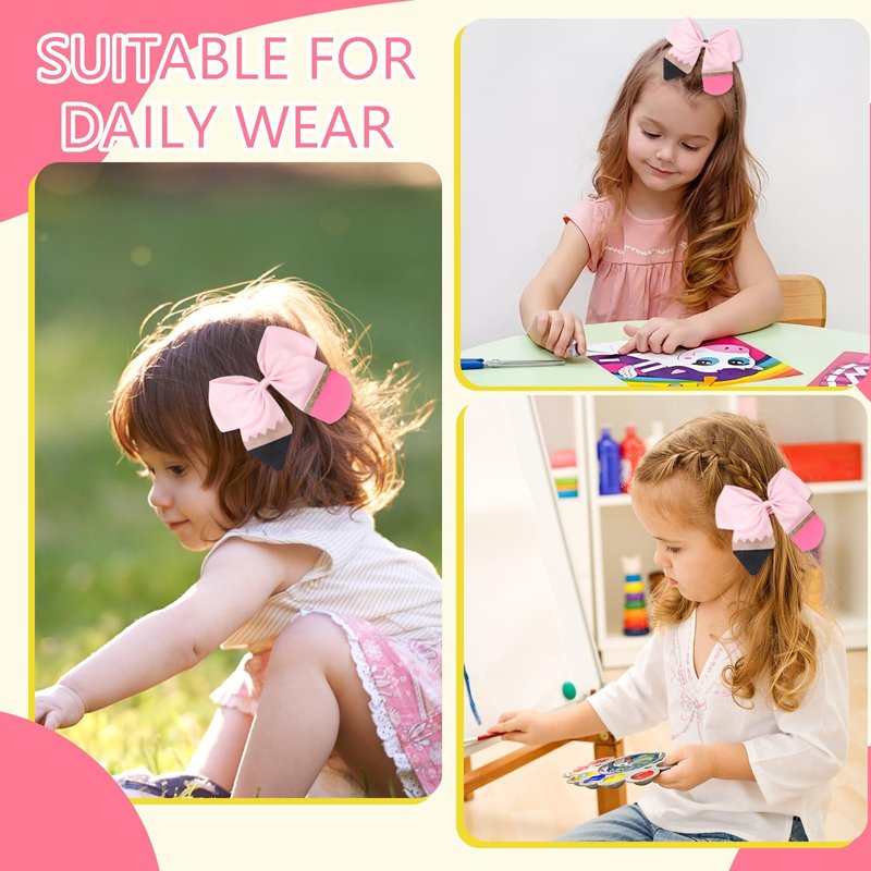 Back to school season just got a little more fun with these adorable hair ties and hair bow bands! Designed to look like pencils, these hair accessories are the perfect way to add a touch of whimsy to your child's hairstyle. Made with high-quality materials, these hair ties and bows won't snag or damage hair, ensuring your little one's locks stay smooth and tangle-free. The pencil-shaped design is not only cute but also functional, allowing for easy styling and keeping hair neatly in place throughout the day. Whether your child prefers a classic ponytail or a trendy half-up, half-down style, these hair ties and bows are versatile enough to complement any look. Best of all, they come in a variety of vibrant colors, so your child can mix and match to suit their mood or outfit. Upgrade your child's back-to-school accessories with these fun and practical hair ties and hair bow bands!
