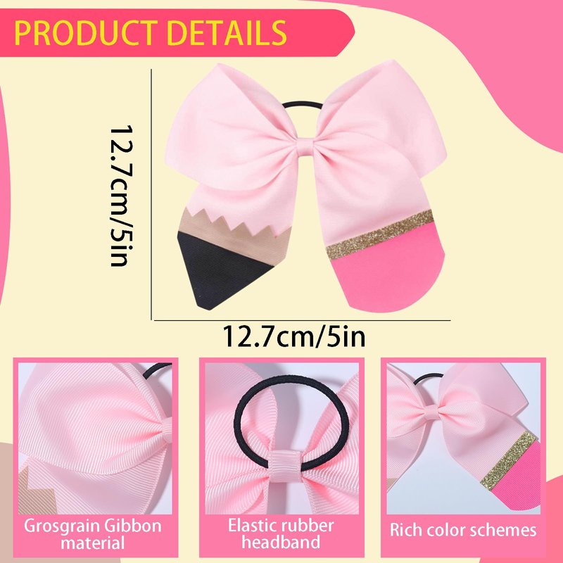 Back To School Hair Ties Tender Powder Hair Bow Bands Pencil Shaped Design No Damage Hair Bows Tie Hair Band Teacher Or Students Hair Accessories for Girls 1PCS