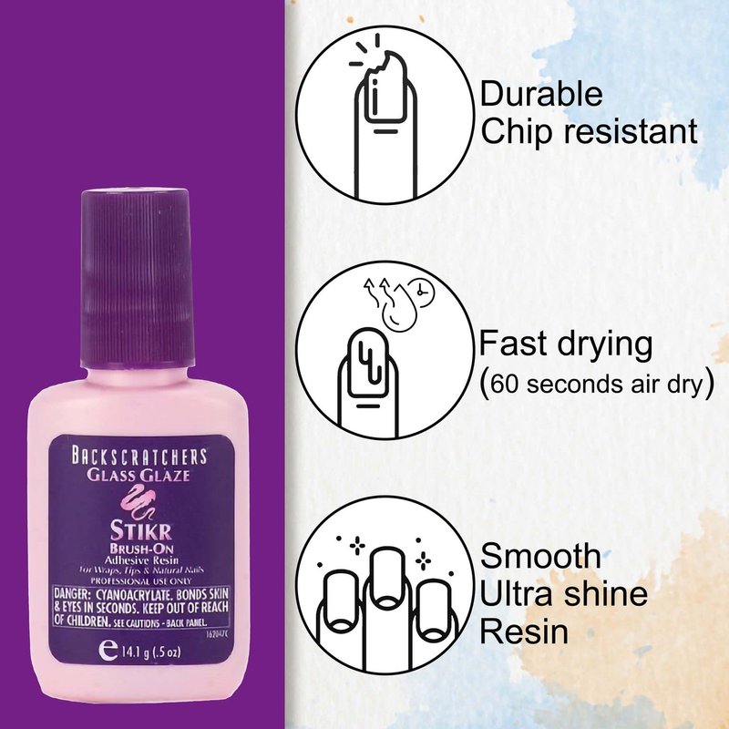 Backscratchers Glass Glaze Stikr Resin - Strong Adhesive for Nail Wraps, Nail Tips, Nail Extensions, Charms, and on Natural Nails - Nail Silk Wrap and Fiberglass Glue 0.5 Fluid Ounce