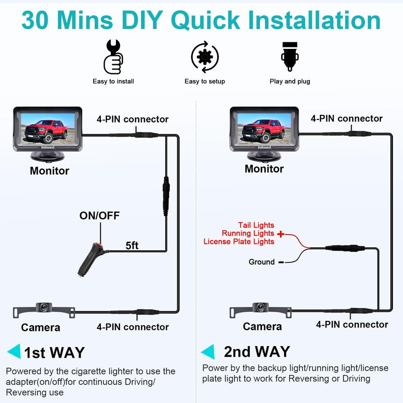 - [ Easy to Install ]: S01 back up camera systems for car only takes 30 minutes from start to finish for installation with our plug-and-play system, saving you time and cost.