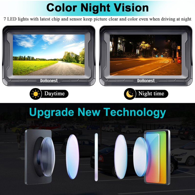 - [ 2-Year Warranty]: DoHonest S01 backup camera with monitor offers lifetime technical support, 2-year replacement service, and a 30-day money-back guarantee for S01 front/rear view backup camera kit. Contact us if you have any questions or concerns.