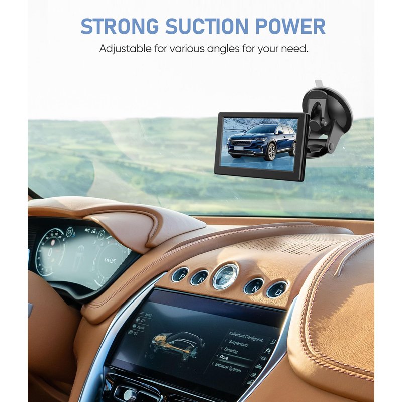 Mount bracket for display monitor comes with two adjustable knobs to better meet the needs of the driver, and every angle can enjoy a good visual effect. The windshield mount for backup camera monitor is compact, so you don't have to worry about blocking the view.