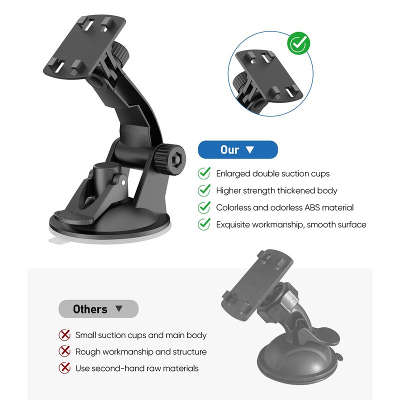 - No harm to the glass, easy to install. The vacuum suction cup of monitor holder is made of PVC material, so it will not cause any damage to the car when it is sucked or put down, which is both reliable and flexible.