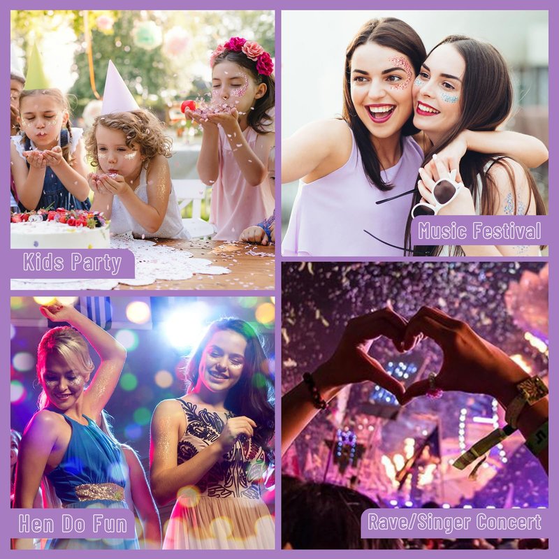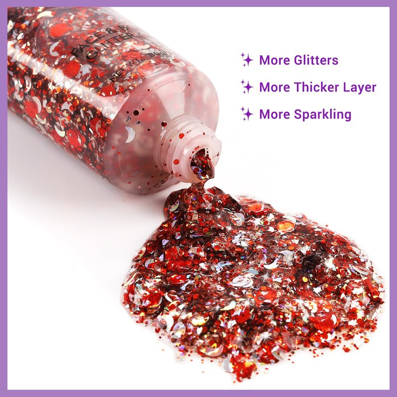 - ✨Multiple Uses - Chunky glittery paste can be use around eyes, on lips, face, hair, nails,collarbones highlight, shoulders and other body parts. And you can even use this to do DIY craft. Perfect for various occasions such as rave outfit accessories. banquets, weddings, singer concert,parties, performances, carnivals stages, bars , dating, celebration, ball, HALLOWEEN, costume, slime paint, music festival, or daily makeups and other venues for a super glittering effect.
