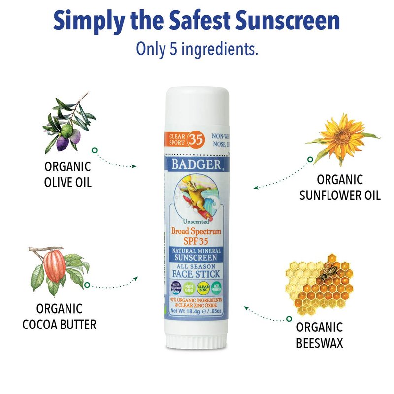 - SUSTAINABLE SUNSCREEN : Badger mineral based sunscreens contain no synthetic ingredients, are cruelty free, and come in 50% PCR packaging. Made with 100% solar power in the USA by a women-owned family business