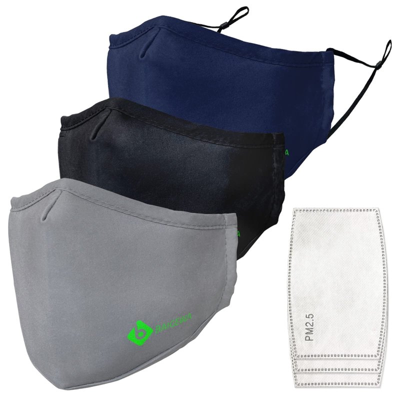 BAIGEWA 3 Packs Cloth Face Mask Reusable with PM 2.5 Filters, Washable Breathable Face Mask, Face Mask for Women and Men