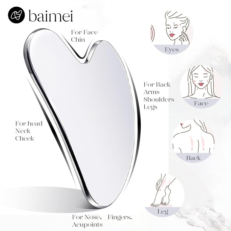 BAIMEI Stainless Steel Gua Sha for Self Care, Metal Gua Sha Facial Tool, Guasha Tool for Face and Body Treatment, Back Muscles Pain Relief, Gift for Men Women